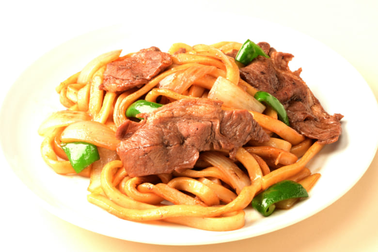 お好みの野菜を一緒に焼いてボリュームたっぷりジンギスカン焼きうどんセット