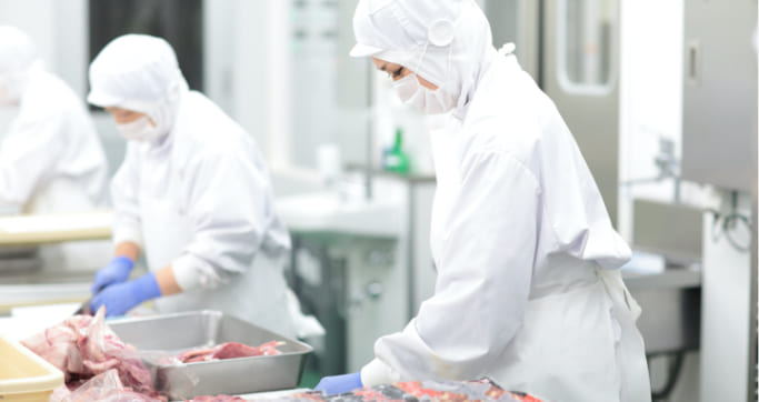 衛生管理を徹底し、冷蔵庫・冷凍庫をはじめ、加工処理室、生肉処理室、加熱室、包装室、入出庫ヤードなどを細かく区分し、それぞれの食材に最適な室温をコントロールし、雑菌の侵入を防ぐクリーンルームにはエアシャワーなども完備し徹底しています。